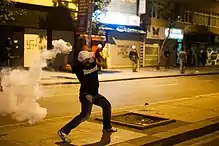 Çarşı played a significant role in the 2013 protests in Turkey, resisting police attacks and even chasing a water cannon away with an excavator they acquired.[18]