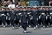 ![]() The École de maistrance marching along the Champs-Élysées on Bastille Day 2008 | |