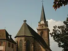 The current Bergheim church was built from 1320 to 1347 and largely modified from 1718 to 1725, which accounts for the fact that it presents features both of Gothic architecture and of Neoclassical architecture.[2][3]