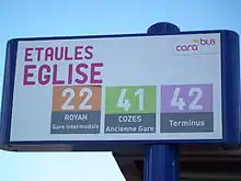 - Route 42 starts at Étaules passing all the stops in the commune and going to La Tremblade, Ronce-les-Bains, and Marennes;