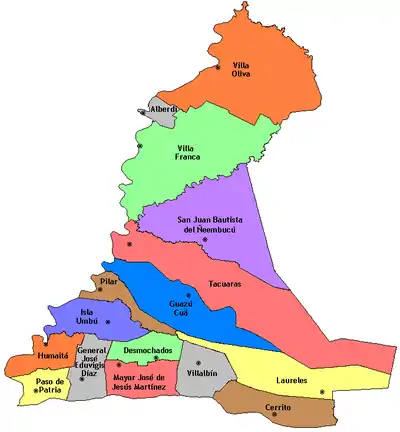 Ñeembucú (Spanish pronunciation: [ɲe(e)mbuˈku]; Guaraní: Ñe'ẽmbuku) is a department located in the south of the Eastern Region of Paraguay. The capital is Pilar. The department is almost entirely rural, and is home to some of the oldest and best-preserved Jesuit ruins, which are located near the town of Humaitá.
