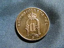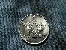 From October 1992, the only coin in use in Sweden with a value below 1 kronor was the 50 öre coin.[2] On 18 December 2008, the Swedish Riksbank announced a recommendation to the Swedish government to phase out the final öre coin by 2010.[3] The coin ceased to be minted on 25 March 2009[4] and ceased to be legal tender after 30 September 2010.