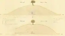 The size of the tombs varies, with the largest of all originally being the Bornhöck burial mound (the largest Bronze Age burial mound in central Europe), dating from c. 1800 BC. The mound belonged to a ruler or 'prince' who was likely associated with the Nebra sky disc.[35] It was originally around 65 metres in diameter and 15 metres in height, but was mostly destroyed in the late 19th century.[36] The mound was originally covered with white limestone (chalk) – a very unusual practice in central Europe but common in contemporary Bronze Age Britain.[37][38][lower-alpha 1] A 'brotlaibidol' clay tablet was also found in the grave.[39]