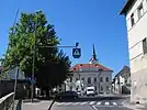 The parish church in the town is dedicated to Saint Peter and belongs to the Roman Catholic Diocese of Novo Mesto. The current building was built in the 17th century on the site of a 13th-century church.[10] There are two other churches in the town. One, dedicated to Saint Sebastian, is mentioned as a chapel in the early 16th century, but was extended into a church in 1646 after an outbreak of the plague. It was restored in 1904 and in 1963. The second is dedicated to the Holy Spirit and is a Gothic building first mentioned in documents dating to 1487, but frequently restyled, most recently in 1895. It is built on top of prehistoric and Roman occupation layers.[11]