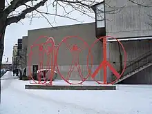 Koman's sculptures are found in the streets and squares of 20 cities, most of them in Stockholm.[10] In front of the Stockholm School of Architecture, his sculpture Från Leonardo ("From Leonardo da Vinci") is one of his widely liked works.[10] Originally located in front of the Yapı Kredi Headquarters in Levent, Istanbul, his sculpture Akdeniz (1980) is the sculptor's most well-known work in Turkey.
