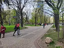The Holy Cross Park (Polish: Park Świętokrzyski) is an urban park in Warsaw, Poland. It is located in the district of Downtown, between Plater Street, Świętokrzyska Street, Marszałkowska Street, and the Palace of Culture and Science. The park was opened in 1955.[1]