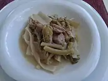 Şevketibostan yemeği (Turkish: Şevketibostan yemeği) is a dish cokked and consumed in Aegean region of Turkiye. Ingredients include Şevketibostan (Cnicus benedictus), lamb chunks, onion, juice of half a lemon, flour, butter, and salt.[1][2][3][4]