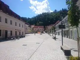 The parish church in the town is dedicated to Michael the Archangel and belongs to the Roman Catholic Diocese of Celje. A second church in town was built in 1776 on the site of a 13th-century predecessor and is dedicated to Saints Hermagoras and Fortunatus.[21]