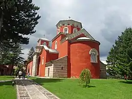 The Žiča Monastery (Serbian: Манастир Жича, romanized: Manastir Žiča, pronounced [ʒîtʃa] or [ʒîːtʃa])[1] is an early 13th-century Serbian Orthodox monastery near Kraljevo, Serbia. The monastery, together with the Church of the Holy Dormition, was built by the first King of Serbia, Stefan the First-Crowned and the first Head of the Serbian Church, Saint Sava.