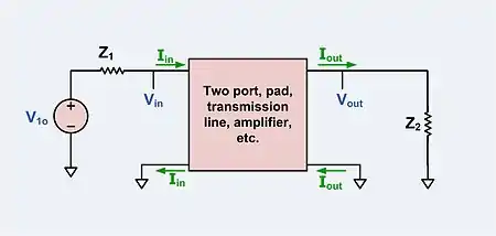 An attenuator is a form of a two-port network with a generator connected to one port and a load connected to the other. In all of the circuits given below it is assumed that the generator and load impedances are purely resistive (though not necessarily equal) and that the attenuator circuit is required to perfectly match to these. The symbols used for these impedances are;
