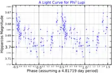 A light curve for Phi1 Lupi, plotted from Hipparcos data[10]