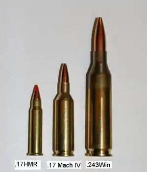 ![]() Left to right: .17 HMR, .17 Mach IV, .243 Win | ||||||||||||