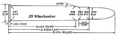 - 1 2 3 4 5 Barnes, Frank (1972). ".35 Winchester". In Amber, John T. (ed.). Cartridges of the World. Northfield, IL: DBI Books. p. 85,177. ISBN 0695803263.