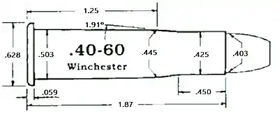 The .40-60 Winchester is a centerfire rifle cartridge intended for 19th-century big-game hunting.[5] Nomenclature of the era indicated the .40-60 cartridge contained a 0.40-inch (10 mm) diameter bullet with 60 grains (3.9 g) of gunpowder.