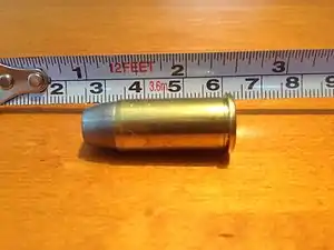 The .44 Russian, also known as the .44 S&W Russian, is a black-powder center-fire metallic revolver cartridge developed and produced by Smith & Wesson in 1870.[1] The .44 Russian design was the first use of an internally lubricated bullet in modern firearm ammunition.[2]