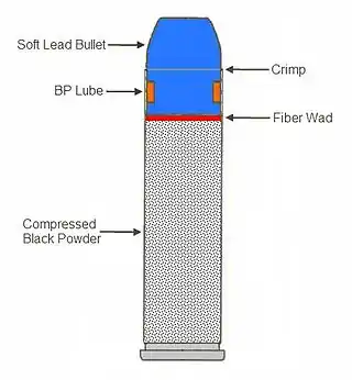 - ↑ 60 grain black-powder loads may cause excessive stress on certain firearms including replica Colt Walker revolvers. Caution should be exercised as damage, injury, or death could result from excessive loads in any firearm.