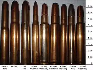 - ↑ Haley, Charlie (April 1999). "450 Nitro Express". African Hunter. 5 (2). Archived from the original on 23 November 2022. Retrieved 23 November 2022.