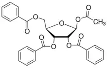 1-O-Acetyl-2,3,5-tri-O-benzoyl-beta-D-ribofuranose, also called β-D-ribofuranose 1-acetate 2,3,5-tribenzoate, is a ribose-derived compound used in nucleoside synthesis.[1]