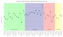 As part of its licence agreement with Jazz FM, Ofcom stated that Jazz FM had to dedicate at least 50% of the daytime output before 19:00 to jazz, and that the music "must sit well with the label jazz".[60] However, from 15 November 2004, as part of an agreement with GMG, Ofcom agreed to allow GMG to change the format, with the 50% jazz in daytime requirement dropped. John Myers said, "The policy we are going on is ratings by day, reputation by night. Jazz is much more of a night-time listen so the changes fit well." As a result, jazz was increased from 40 to 45 hours[67] and the Dinner Jazz programme hours were increased from two to three.[68][69]
