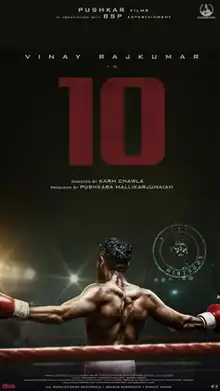 10 is a 2022 Kannada-language film directed by Karm Chawla and starring Vinay Rajkumar in the role of a boxer, Gopal Deshpande as the coach and Anusha Raghunath. The film is a sport drama exploring the life and struggles of a boxer.[1][2] 10 was announced in May 2019 and the shooting commenced in September 2019, wrapping just three months later in December 2019. It was made with a budget of ₹70 lakh (US$88,000), and the production budget amounted to just under ₹50 lakh (US$63,000), thus setting the stone for a new generation of high quality low-budget Kannada flicks. Before the commencement of principal photography, actor Vinay Rajkumar trained intensely for his role as a Featherweight Boxer by having regular workouts and strict diet regimen for six months.[3]