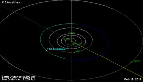 - ↑ Yeomans, Donald K., "113 Amalthea", JPL Small-Body Database Browser, NASA Jet Propulsion Laboratory, retrieved 12 May 2016.