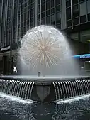 1345 Avenue of the Americas is an unrelieved slab structure in the International Style, sometimes referred to as "corporate" style, faced with dark glass. Its small plaza is dominated by its sprinkling fountain like a dandelion seedhead. It replaced the original Ziegfeld Theatre.