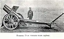 The 152 mm howitzer M1909 (Russian: 152-мм гаубица обр. 1909 г.) was a Russian Empire 152.4 mm (6 inch) howitzer. Developed by the French arms manufacturer Schneider et Cie it saw service throughout World War I.