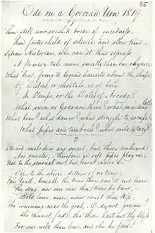 First known copy of John Keats' Ode on a Grecian Urn, transcribed by George Keats this year
