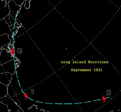 - 1 2 Cotterly (1999). "1821 New England Hurricane" (PDF). Retrieved 2007-07-04.