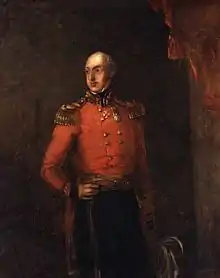 Despite this ominous turn of events, Sir Willoughby Cotton was replaced as commander of the remaining British troops by Sir William Elphinstone, who was ill at the time and initially unwilling to accept the appointment. The 59-year-old Elphinstone had entered the British army in 1804. He was made a Companion of the Bath for leading the 33rd Regiment of Foot at the Battle of Waterloo. By 1825 he had been promoted to colonel and then to major general in 1837. Although Elphinstone was a man of high birth and perfect manners, his colleague and contemporary General William Nott regarded him as "the most incompetent soldier that was to be found amongst all the officers of requisite rank".[16]