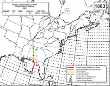 - ↑ "1863 Hurricane Not Named (1863145N27272)". International Best Track Archive for Climate Stewardship. Retrieved July 12, 2022.