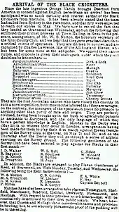 - ↑ "M.C.C. vs. Ten Aboriginals with T. W. Wills". Bell's Life in Victoria and Sporting Chronicle (Melbourne). 29 December 1866. p. 2. Retrieved 25 January 2016.