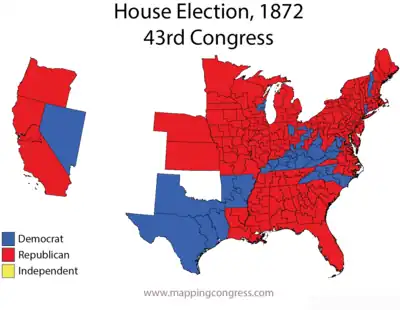![]() Map of U.S. House elections results from 1872 elections for 43rd Congress | |||||||||||||||||||||||||||||||||||||||||||||||||||||||||||||||||||||||||||||||||||||||