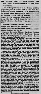 - ↑ "The Stevens Institute Team Defeat the Boys From Rutgers College by One Goal to Nothing". New York Daily Herald. November 10, 1878. p. 7 – via Newspapers.com.