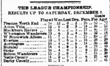 League leaders Preston travelled to West Bromwich Albion on Boxing Day winning 5–0 and, with Aston Villa not playing, they established a nine-point lead having played two games more.