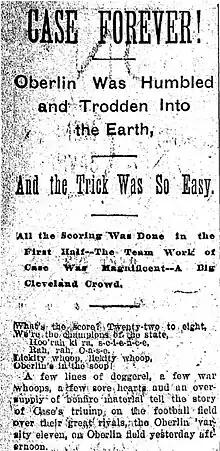 - ↑ "Something About the Case Men. They Had No Coach but They Played Good Football--Seventeen Men Are on the Cleveland Reserve List". Plain Dealer. Cleveland, Ohio. December 10, 1893. p. 13.