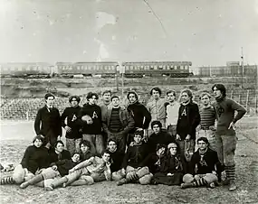 Coach John Heisman is in the second row in the middle wearing glasses.