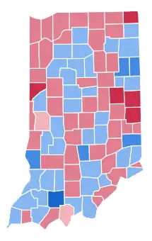 Tippecanoe | 6,239 | 56.77% | 4,639 | 42.21% | 111 | 1.01% | 1,600 | 14.56% | 10,989 |