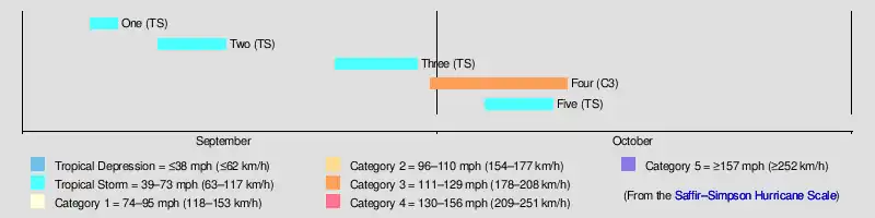 5 systems | September 6 – October 10 | 120 (195) | Unknown | Unknown | 8 |