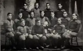 ![]() Team captain Cone is seated in the center of the photo, holding football | |