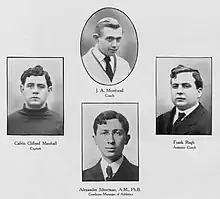 Calvin Marshall^ | tackle | 10 | 6' 1" | 200 | 1908 | Gloucester H.S. (MA) | Doctor of Medicine | Mt. Oliver, PA | |