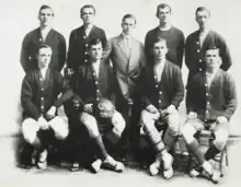 The 1909–10 Georgetown Hoyas men's basketball team represented Georgetown University during the 1909–10 NCAA Division I college basketball season. Maurice Joyce coached the team in his third season as head coach.[1] Georgetown was an independent and for the last time played its home games at the Odd Fellows Hall at 8th and D Streets NW in downtown Washington, D.C.[2] The team finished the season with a record of 5–7.