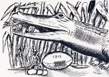The team was captained by Neal "Bo Gator" Storter. The team was also the first to use the nickname "Gators." He is as such one reason given for the nickname. A former player Roy Corbett sent a letter to The Gainesville Sun congratulating the 1928 team and mentioned the nickname coming from Storter.[3] Carl Van Ness's research also posits Storter as the name's origin.[4] Storter himself denied the above and stated the nickname 'Gators' came when a Macon Telegraph reporter declared "Macon to be invaded by a bunch of alligators from Florida" before the game with Mercer in 1910.[3][5]