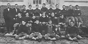 The starting lineup was Swanson (left end), Coarsey (left tackle), Baker (left guard), Storter (center), Wilson (right guard), Bullock (right tackle), Buie (right end), Shackleford (quarterback), Tenney (left halfback), Taylor (right halfback), Pound (fullback).[7]