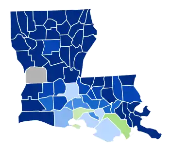 | Lafourche | 629 | 32.51% | 157 | 8.11% | 1,149 | 59.38% | -520[lower-alpha 3] | -26.87% | 1,935 |