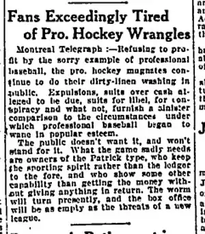- ↑ "This Should Settle Hockey Troubles". Ottawa Citizen. November 11, 1918. p. 8. Retrieved September 2, 2011.