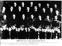 There was no contemporaneous system in 1919 for determining a national champion. However, Notre Dame was retroactively named as the co-national champion for 1919 by the National Championship Foundation and Parke H. Davis. Other selectors chose Harvard, Illinois, and/or Texas A&M as the 1919 national champion or co-champion.[4]