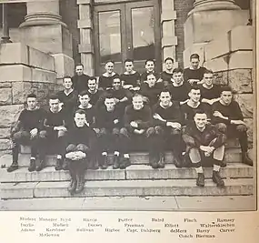 The 1920 Montana Grizzlies football team was an American football team that represented the University of Montana as an independent during the 1920 college football season. In their second of three seasons under head coach Bernie Bierman, the Grizzlies compiled a 4–3 record and outscored opponents by a total of 227 to 92.[1][2] The highlights of the season were a 133–0 victory over Mount St. Charles in the first game of the season (the largest margin of victory by any team during the 1920 college football season); an 18–14 victory over Washington at Seattle on October 16; and a victory over rival Montana State on November 13.[3] Tackle Swede Dalberg was the team captain.[4]