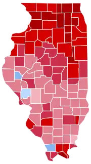 As it turned out, the editorial estimate was shown extremely conservative by the very earliest reports on polling day, which showed Harding winning by three-to-one.[9] Ultimately, Harding did not finish with so large a margin as this, but nonetheless he carried Illinois by 42.30 percentage points. This constitutes the biggest margin by which Illinois has been carried in the state's presidential election history, the best performance by any Republican candidate,[4] and the third-best vote percentage overall behind Andrew Jackson’s two efforts in 1828 and 1832. Harding carried all but three counties, and was the first-ever Republican victor in the following counties: Calhoun, Cass, Clinton, Effingham, Gallatin, Hamilton, Jasper, Jersey, Mason, Pike, Schuyler, Wabash and White.[10]