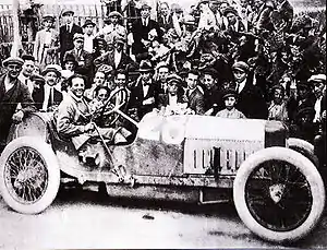 Émile Mathis was the sole other French entrant with a car of his own manufacture. Still so close to war's end, German teams were not invited.[15] The Anglo-French STD (Sunbeam) company had seven cars entered, however ten days out from the race Louis Coatalen, racing director realised the cars would not be prepared and withdrew the team. When the drivers protested he relented to let anyone who could be ready to race. In the event four started – those for René Thomas, André Boillot and Brooklands regulars Kenelm Lee Guinness and Henry Segrave - while another STD entrant, alcohol heir André Dubonnet, switched to Duesenberg to replace their injured driver, Inghilbert.[20][21] FIAT had entered three of its new 802 models,[22] including cars for Bordino, and Sivocci (formerly at Alfa Romeo). However industrial unrest in Italy prevented them being ready and delivered in time.[20][16] When entries closed the list was quite short. Fred Duesenberg had been keen to send four cars across but could not afford the shipping costs. When French-American spark-plug manufacturer Albert Champion provided $60000 of sponsorship, their entries were gladly received.[20][12] The works drivers of Murphy, Guyot and Boyer were supplemented by French driver Louis Inghilbert.